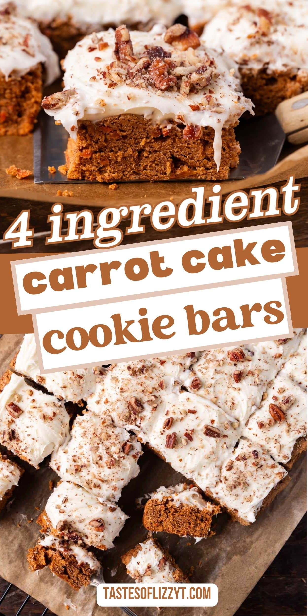 These carrot cake bars are made with a boxed cake mix, but they bake up soft, rich, and just dense enough to feel homemade. With only 4 ingredients in the cake mix bars, this is one of the fastest ways to get a carrot cake dessert on the table without extra steps.