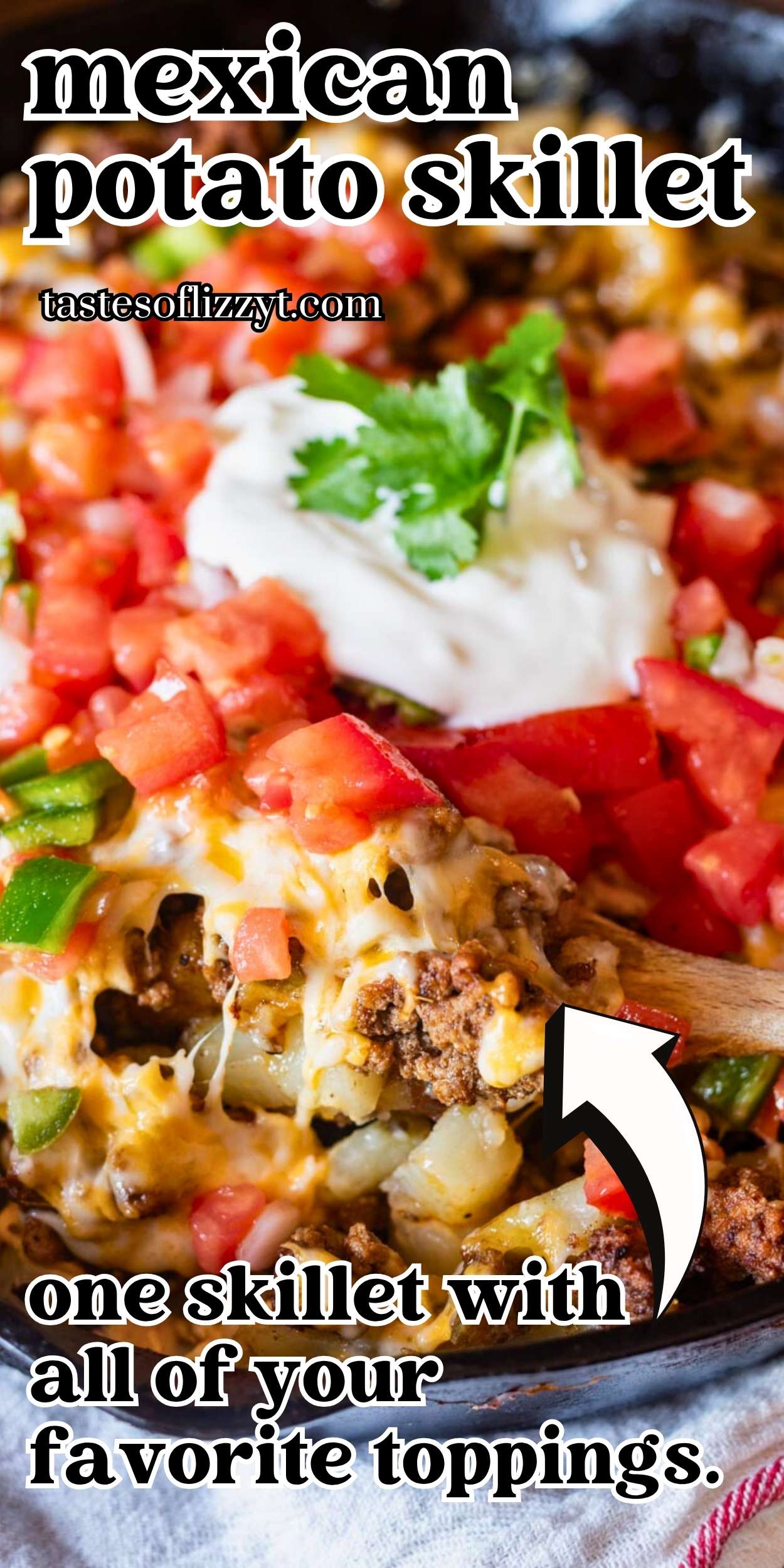 Top golden brown potatoes with your favorite taco ingredients for gluten free skillet Mexican potatoes the family will love!