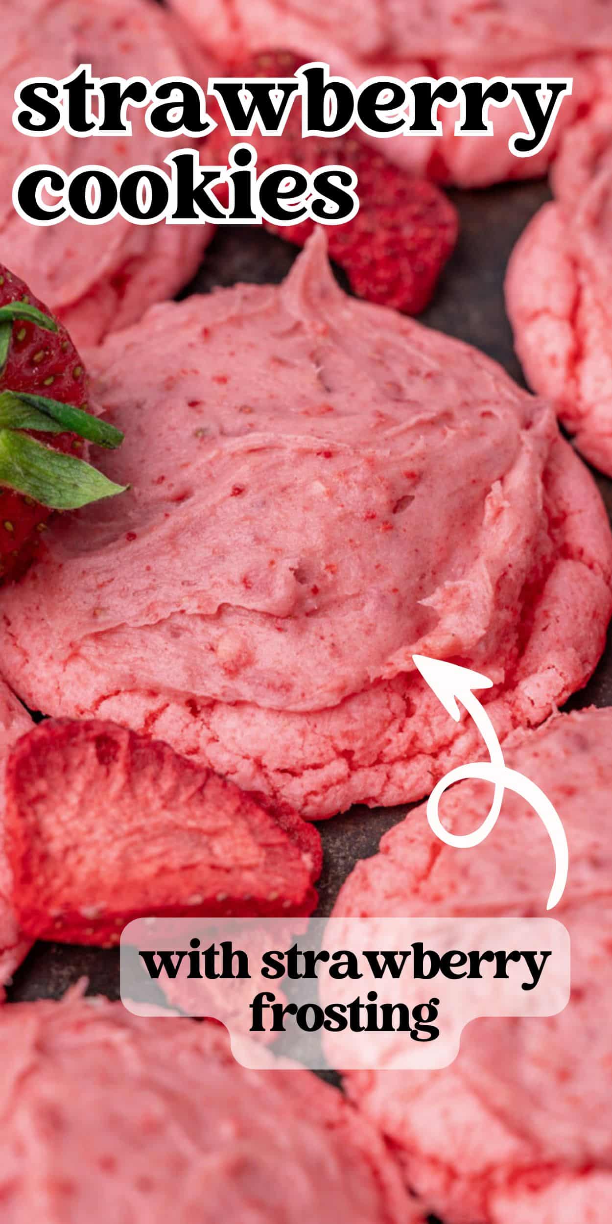 In 2023, I switched up the frosting and used freeze-dried strawberries rather than fresh. You can find that original recipe in the notes of the recipe card, but I prefer this strawberry buttercream now. It makes the cookies more shelf stable and stackable for storing in the fridge or freezer.