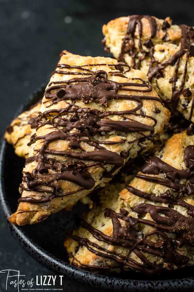 Now you can leave the scones as is, but we recommend melting dark chocolate and drizzling the scones. The look beautiful like this, and no one ever turns up their nose at extra chocolate!