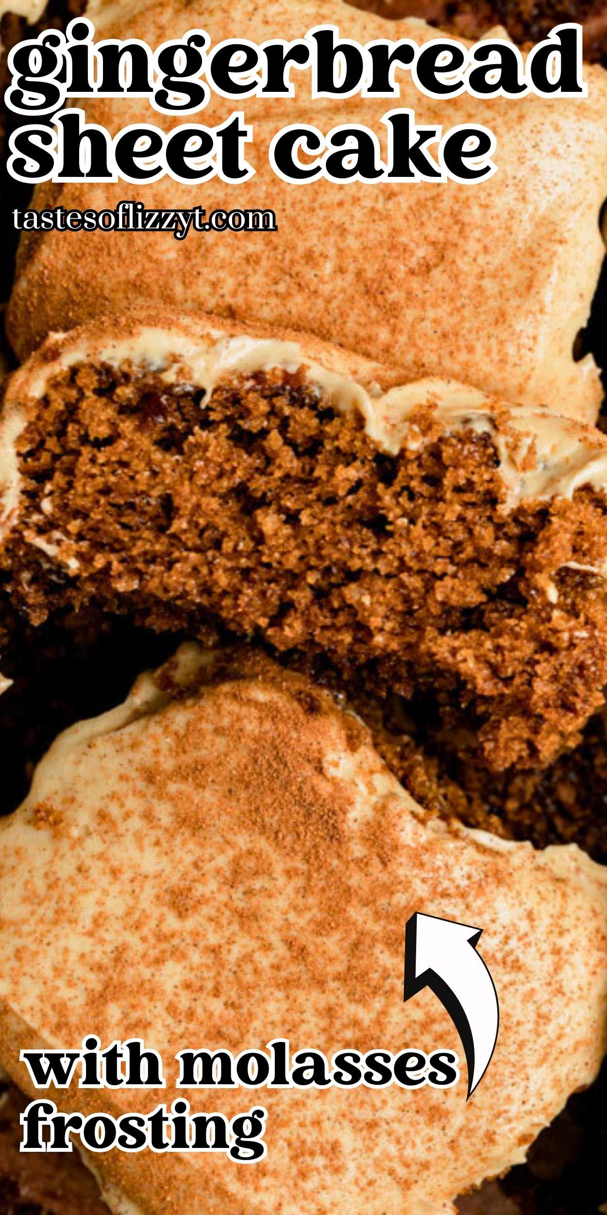 Start the holiday season with this delicious molasses-rich gingerbread sheet cake. It's an easy homemade cake frosted with a cream cheese molasses frosting.