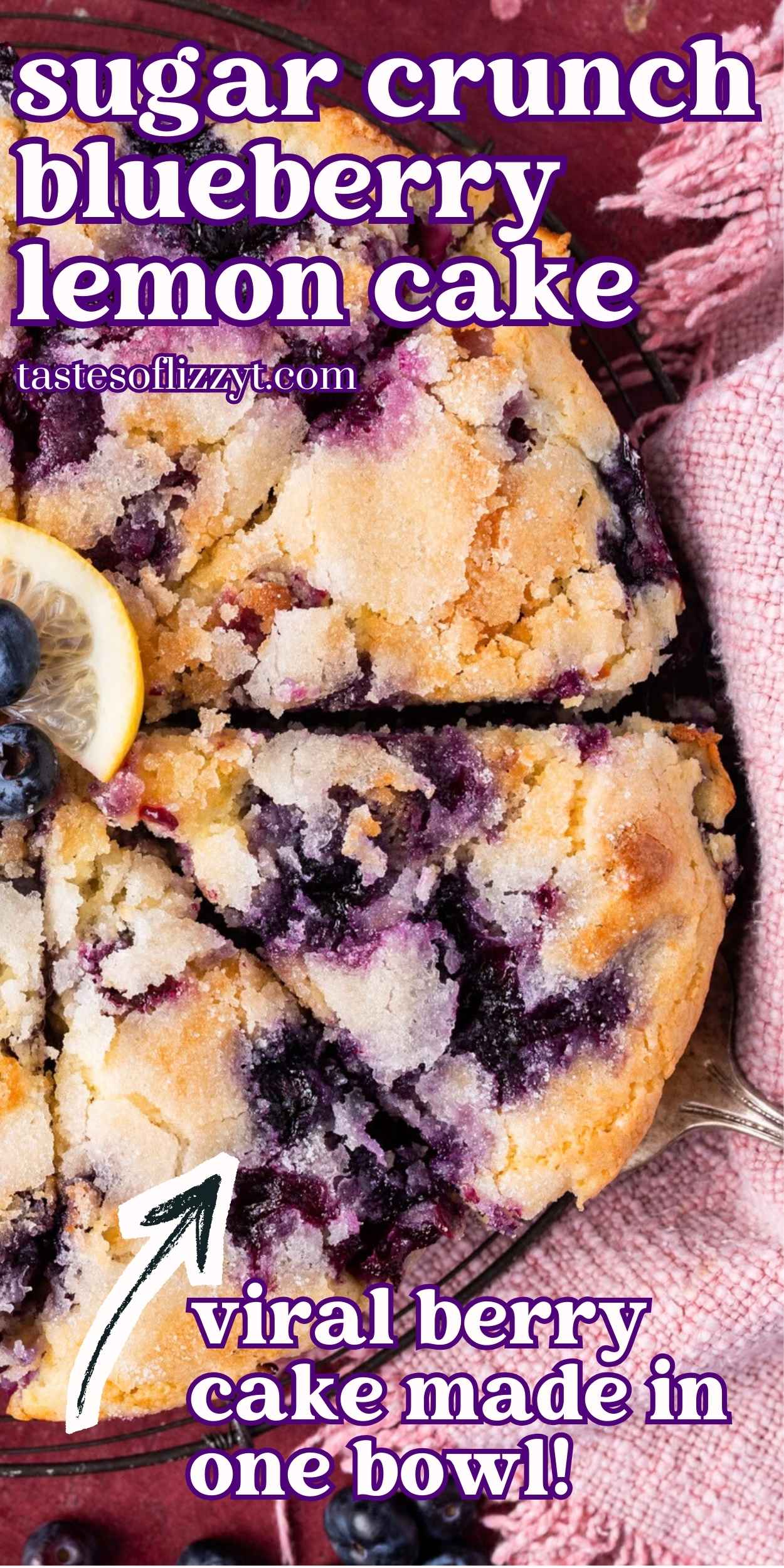 Our viral berry cake takes a new turn with this lemon blueberry cake recipe loaded with fresh blueberries, lemon zest and juice and that classic sugar crunch top you love.