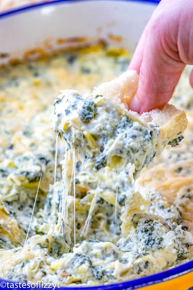 Do you love warm, cheesy dips? Whether they are a spicy dip or Italian flavored, we’re all about that melty cheese. This classic spinach artichoke dip won’t disappoint.