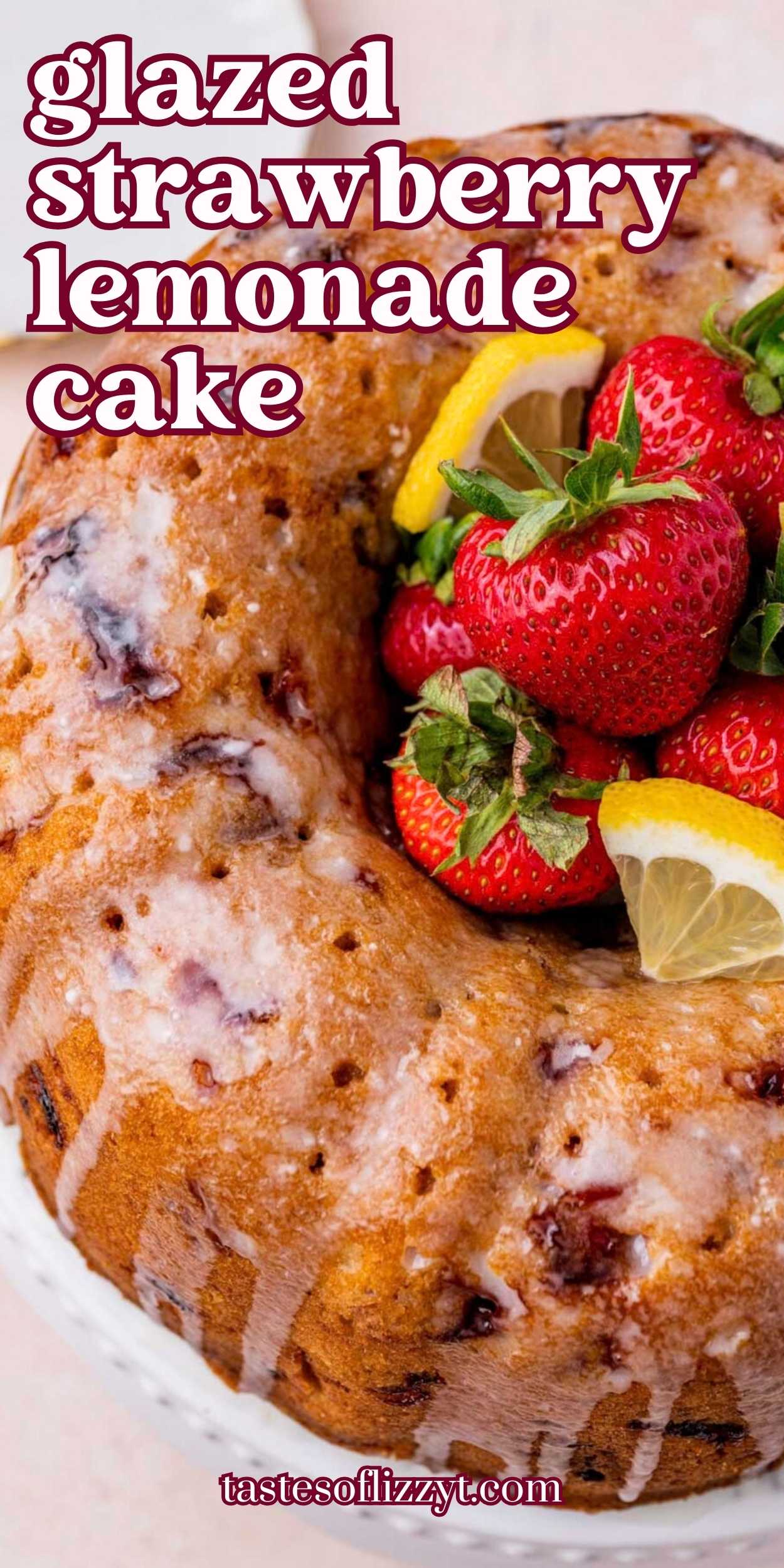 Homemade Strawberry Lemonade Cake gets a flavor burst from real strawberries and lemon zest. You’ll love the fresh lemon glaze on top!