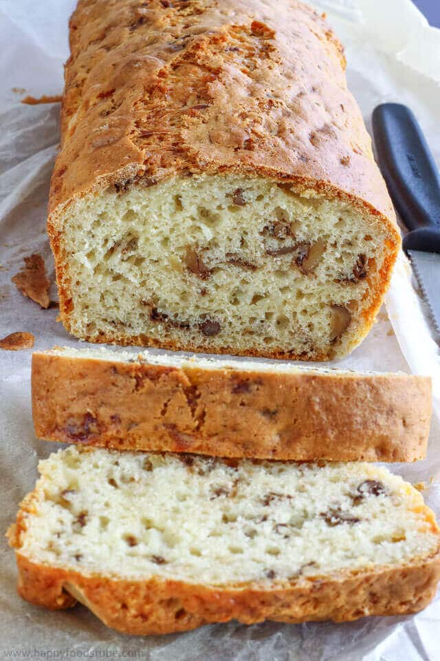 I couldn’t help but share this delicious walnut bread recipe with you today! It’s so easy to make. Only 6 ingredients and the prep takes less than 10 minutes. Isn’t that great?